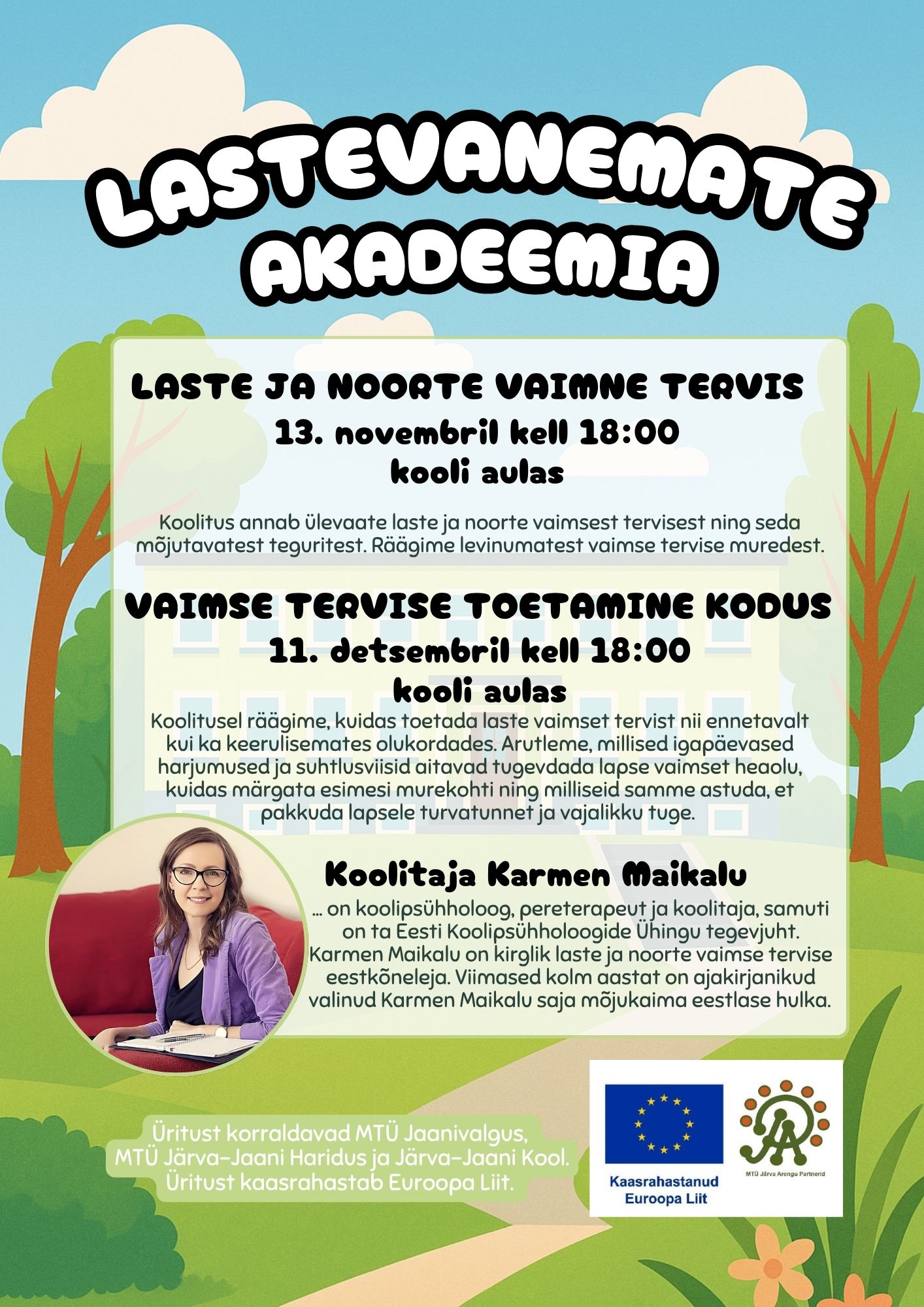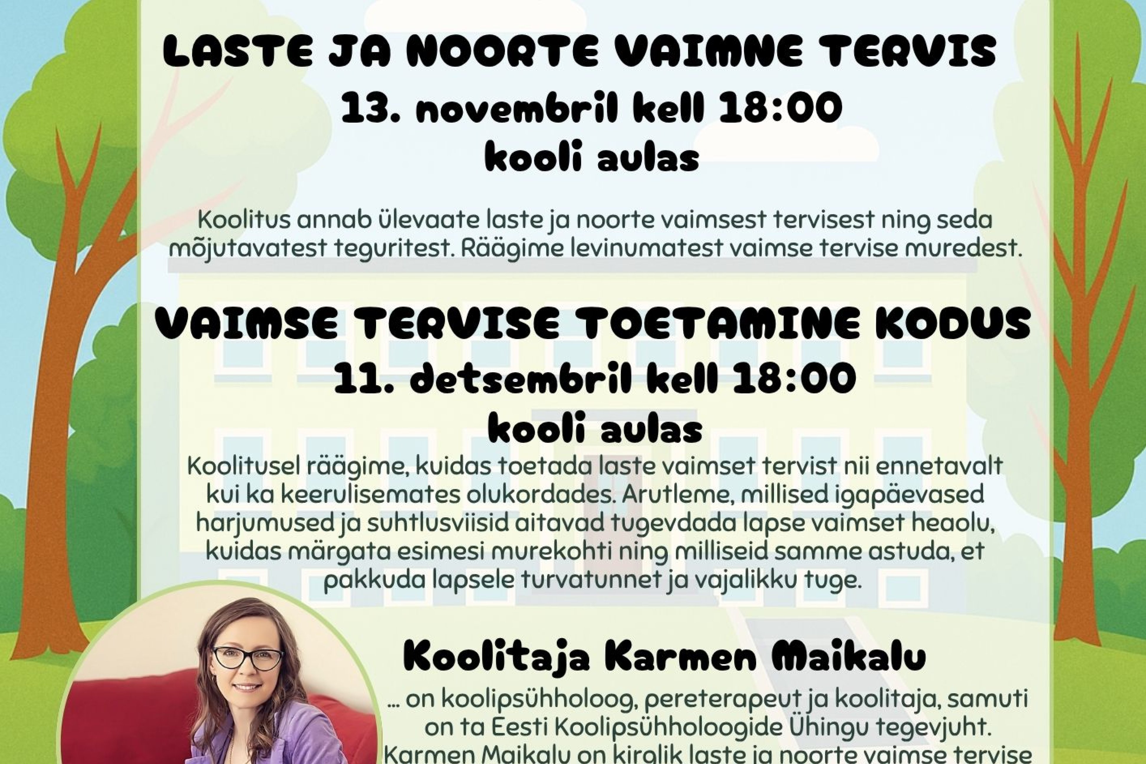 Ootame Sind esimesse Lastevanemate Akadeemia loengusse, mis keskendub laste ja noorte vaimsele tervisele. Koolitajaks on psühholoog ning pereterapeut Karmen Maikalu.
