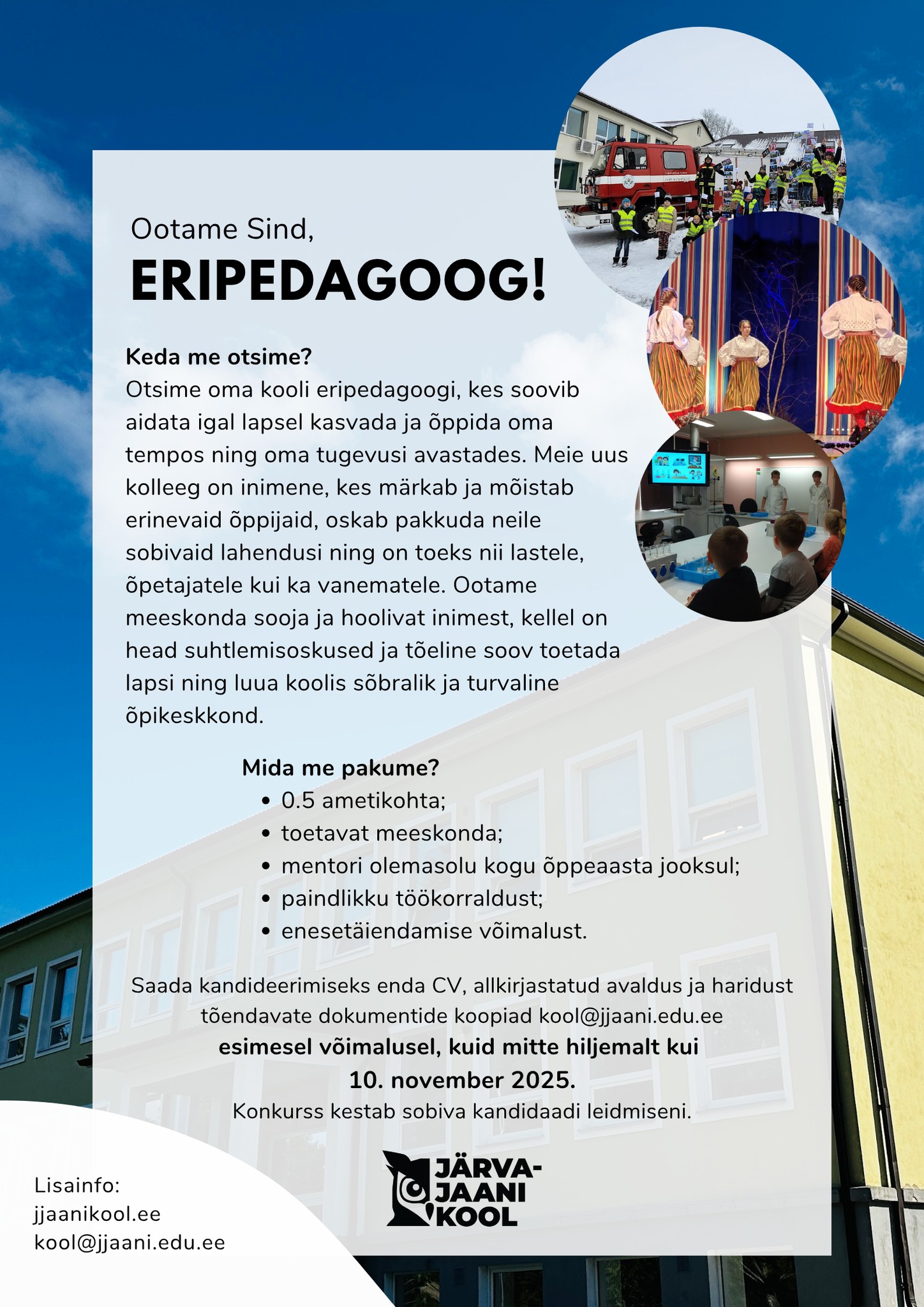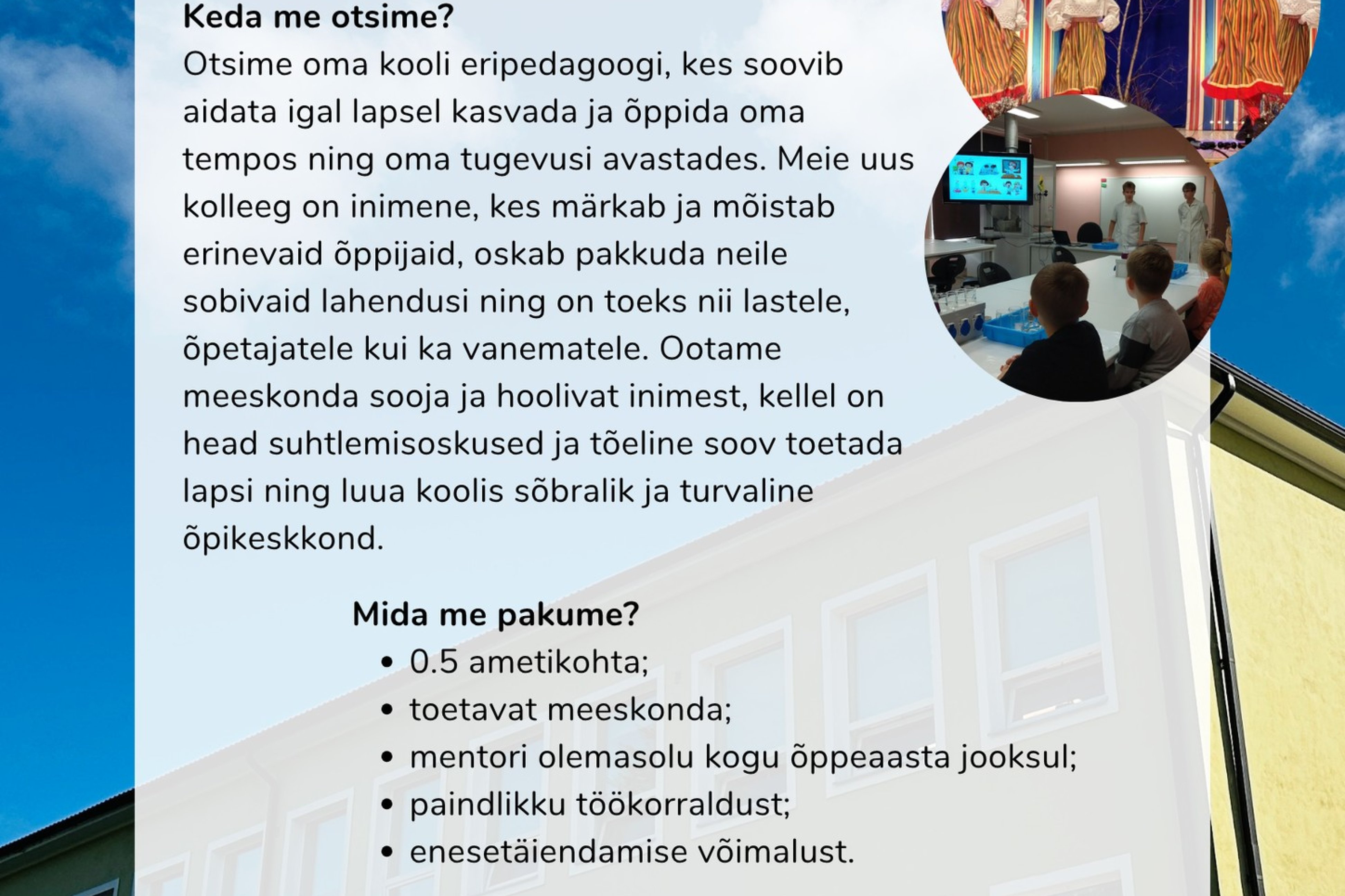 Otsime oma kooli eripedagoogi, kes soovib aidata igal lapsel kasvada ja õppida oma tempos ning oma tugevusi avastades. Liitu meiega!