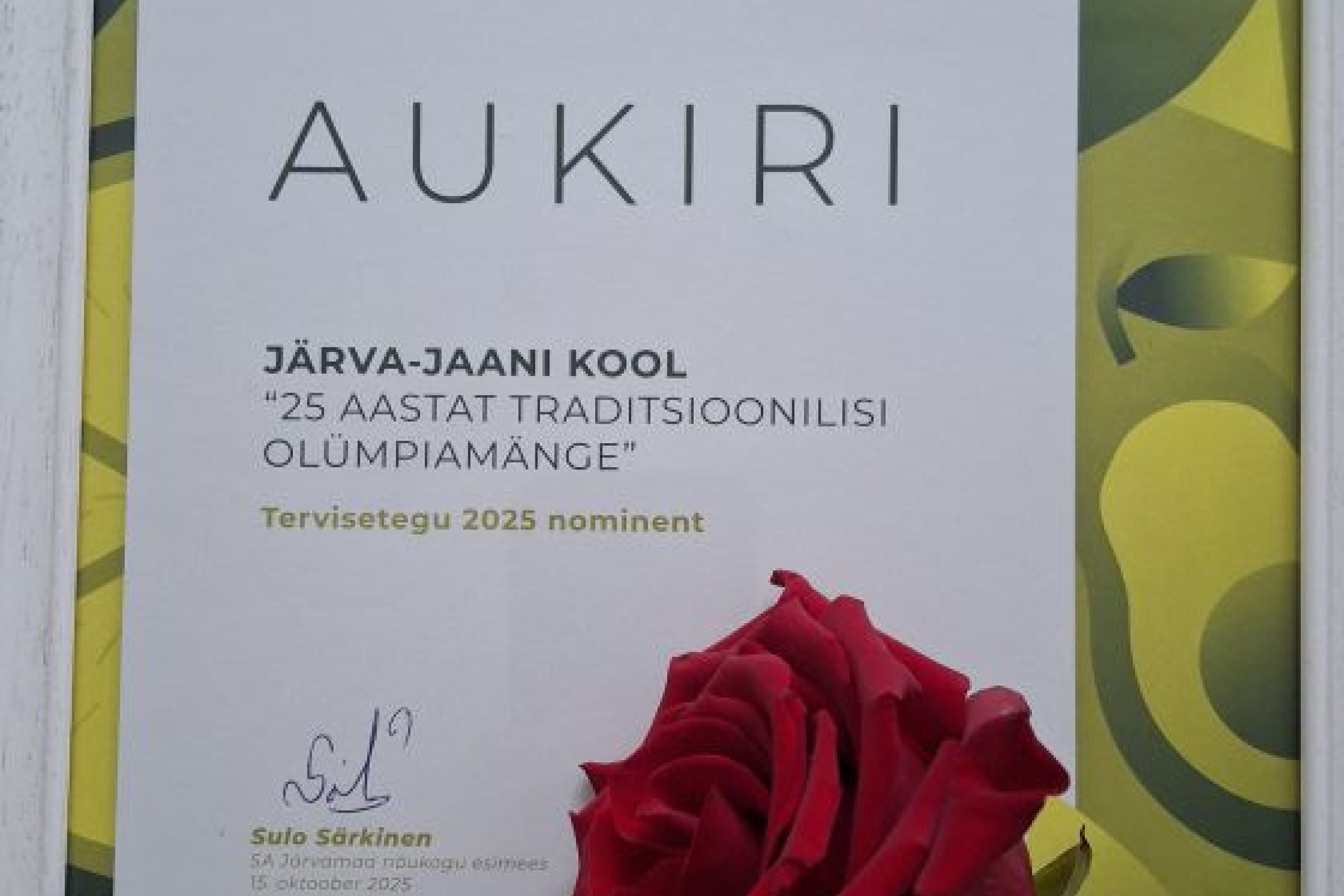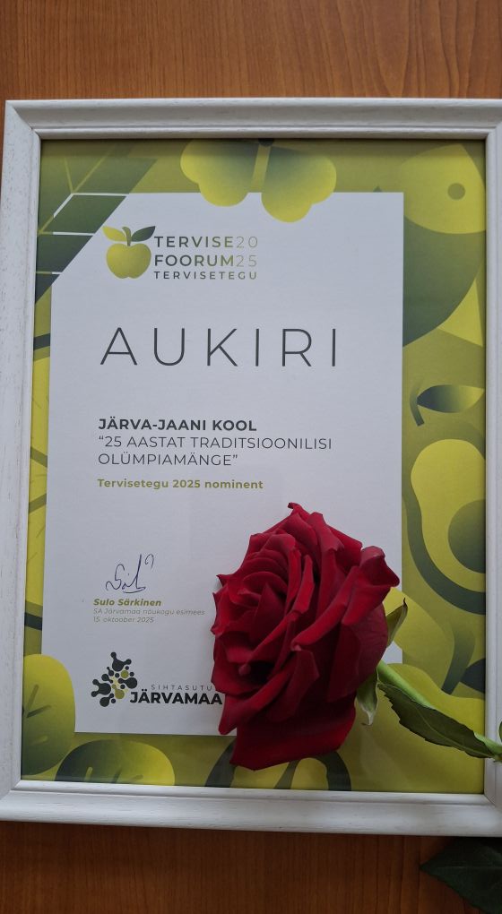 Meil on suur rõõm teatada, et Järva-Jaani Kool oli Järvamaa aasta Terviseteo 2025 nominendiks tänu meie juba 25 aastat kestnud traditsioonilistele olümpiamängudele!