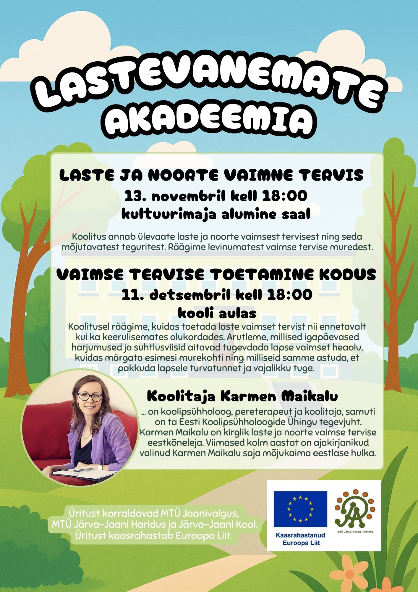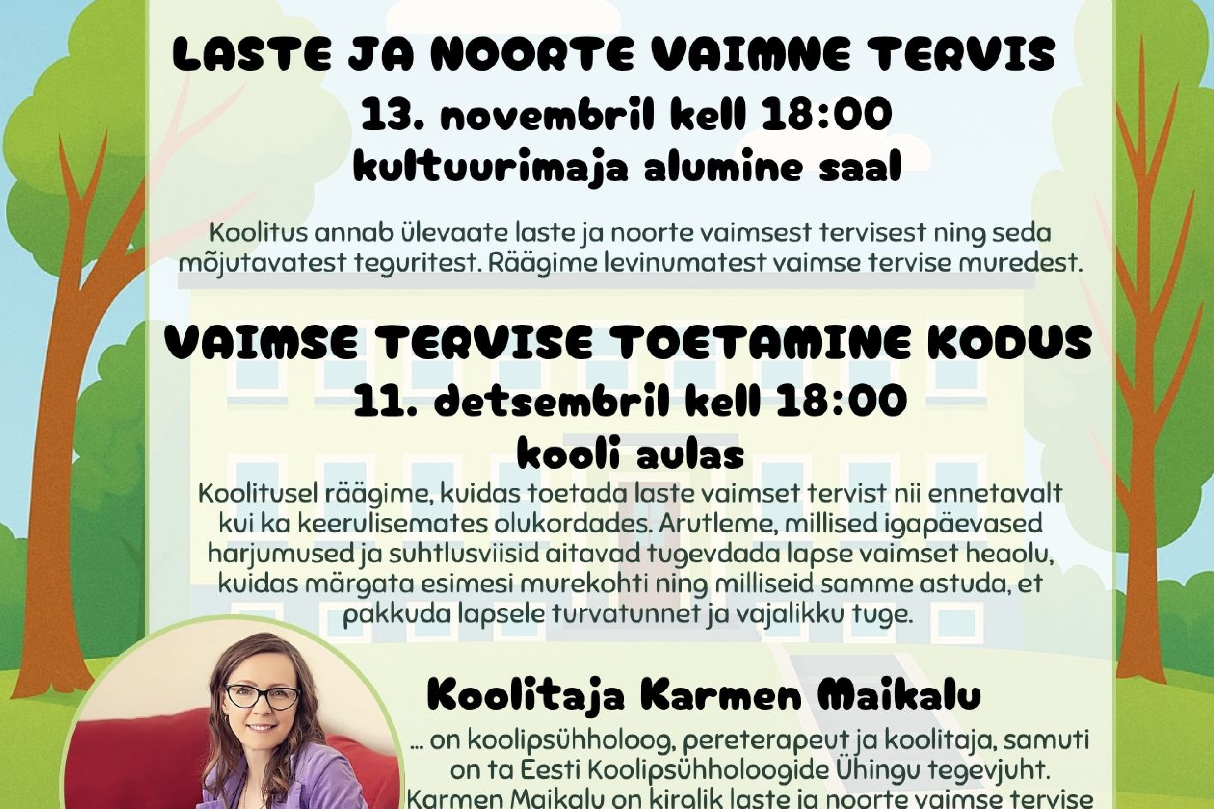 Ootame Sind esimesse Lastevanemate Akadeemia loengusse, mis keskendub laste ja noorte vaimsele tervisele. Koolitajaks on psühholoog ning pereterapeut Karmen Maikalu.