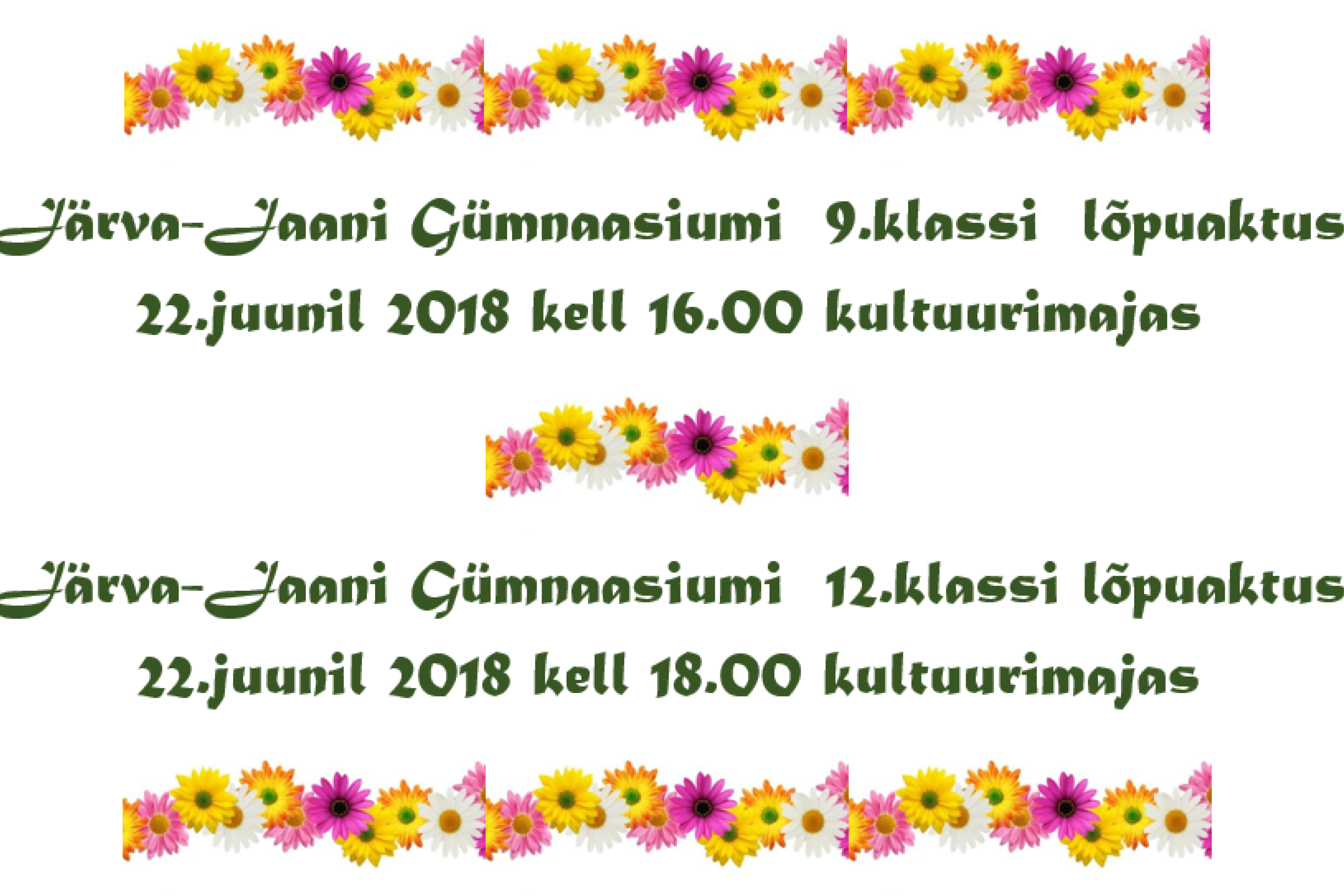 Järva-Jaani Gümnaasiumi 9.klassi lõpuaktus 22.juunil 2018 kell 16.00 kultuurimajas