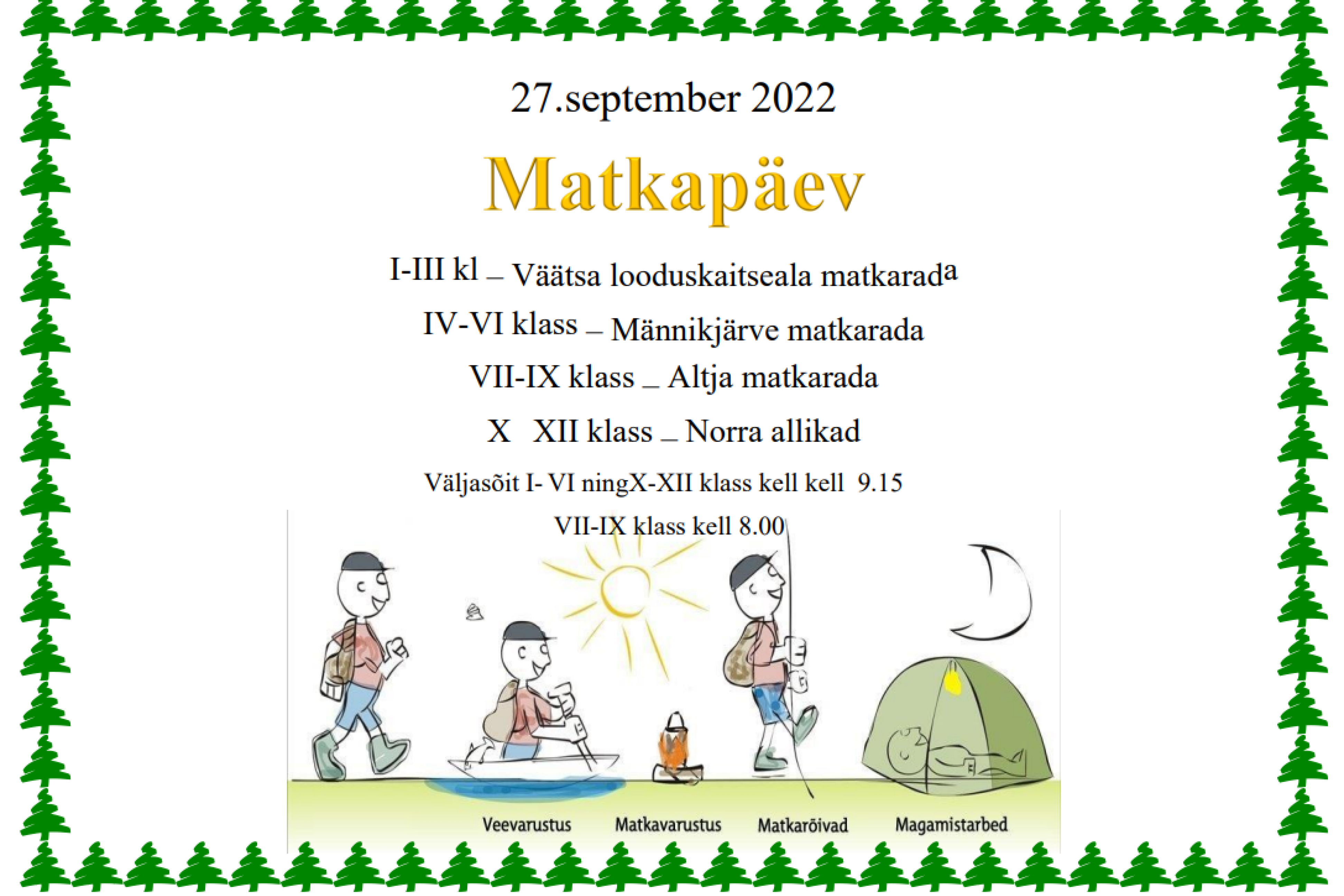 Väljasõit I-VI ja X - XII klass kell 9.15